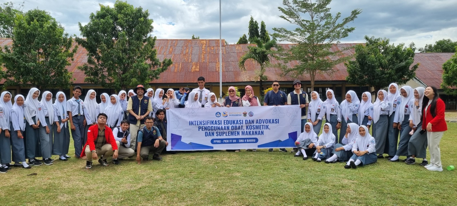 Tim IDEAoks dari Fakultas Farmasi Universitas Hasanuddin melaksanakan Program Pengabdian kepada Masyarakat bertajuk “Intensifikasi Edukasi dan Advokasi Penggunaan Obat, Kosmetika, dan Suplemen Makanan Aman bagi Masyarakat Sekolah” di SMA Negeri 4 Barru, Kecamatan Mallusetasi, Kabupaten Barru. Program ini berlangsung sejak Juni hingga September 2025 dengan melibatkan dosen lintas fakultas, mahasiswa, dan seluruh komunitas sekolah.